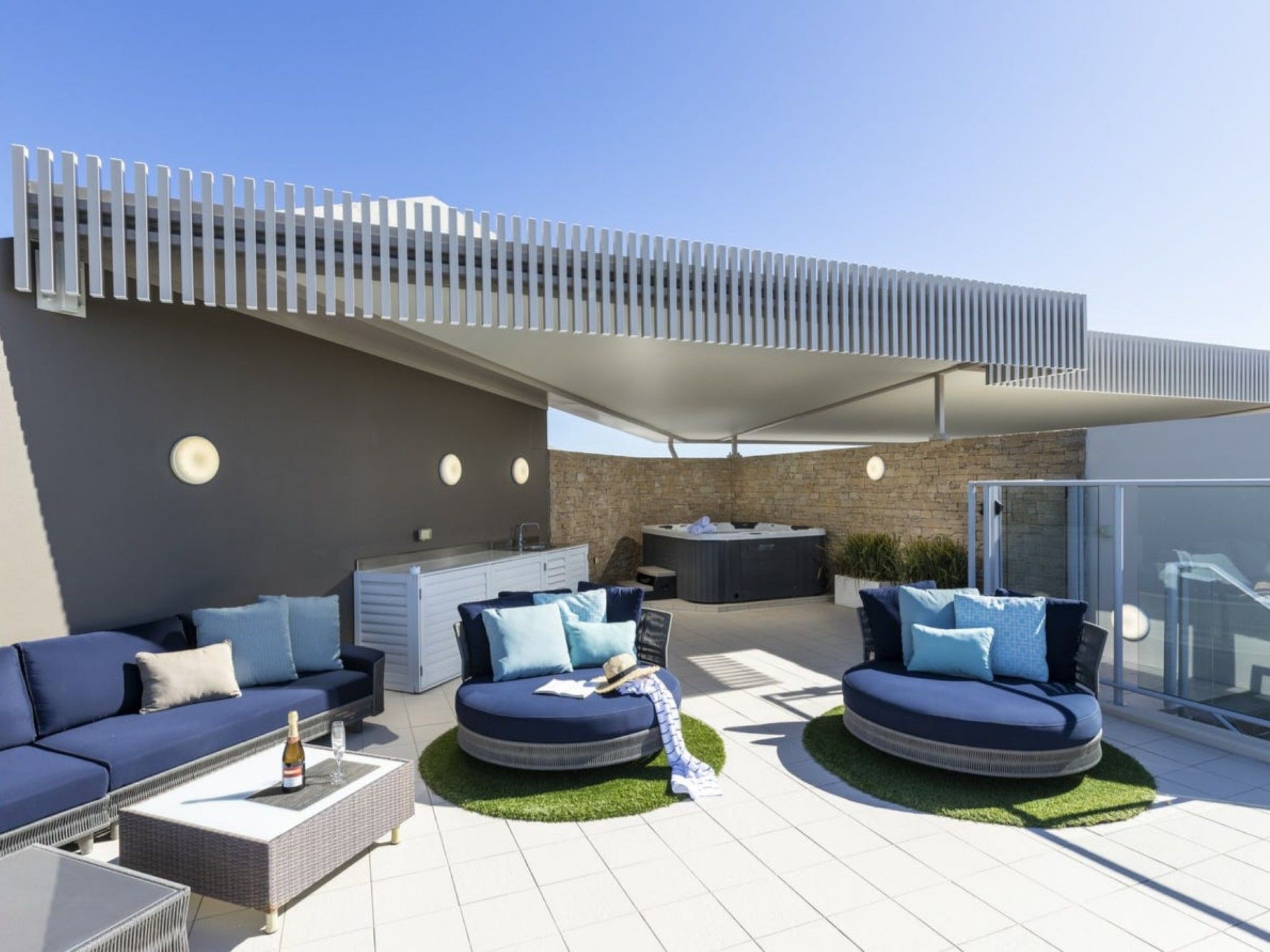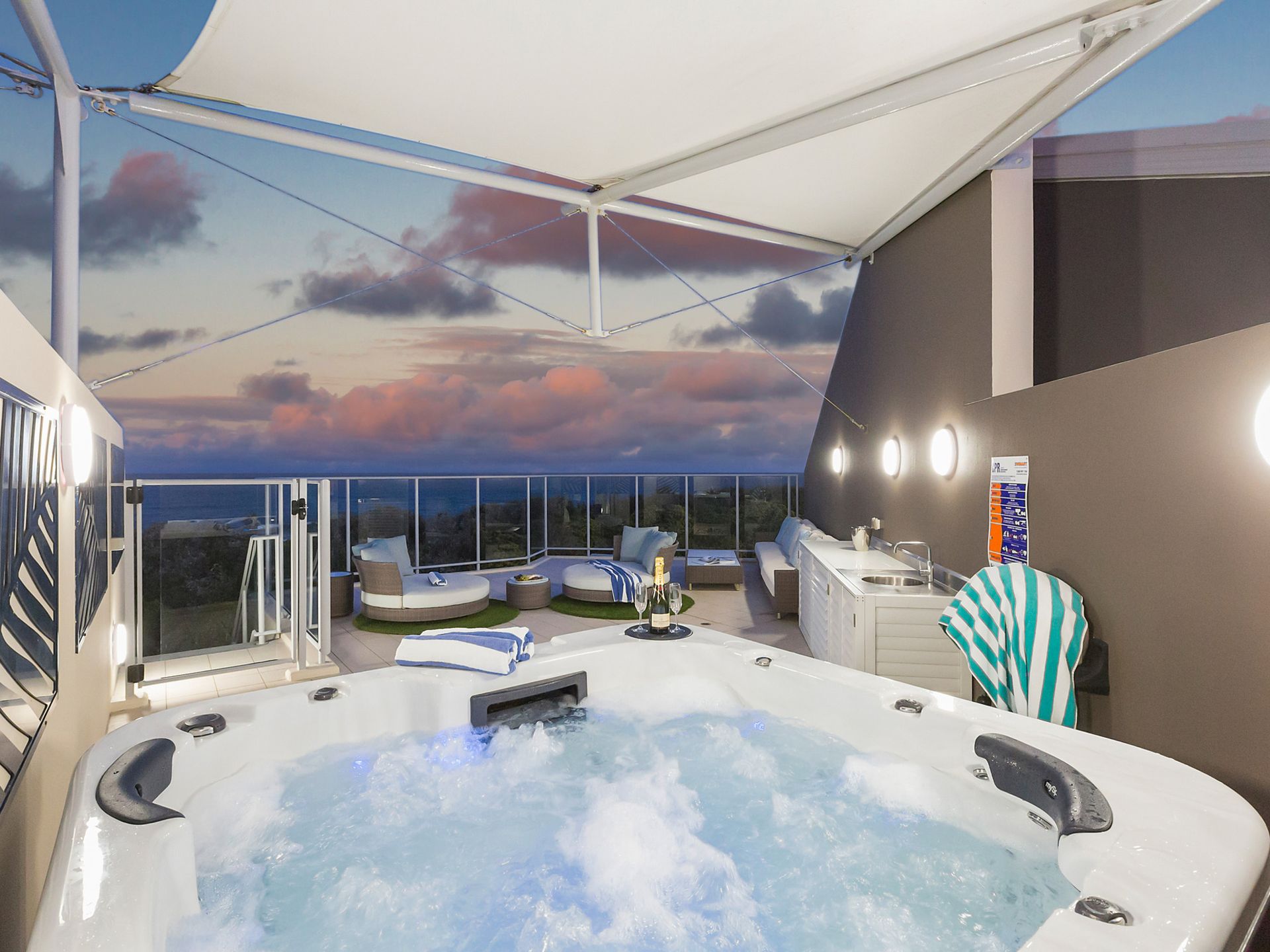 Luxury beachfront apartment with rooftop balcony with a spa!