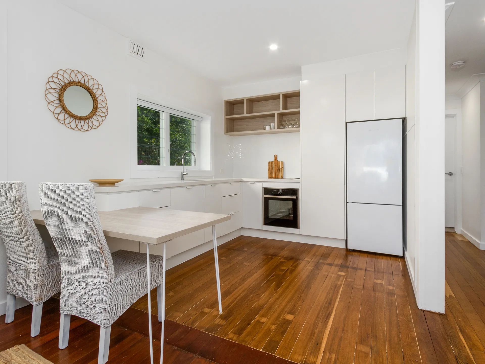 The polished timber floorboards are a reminder of the history of this beachside renovated beauty. The open-plan living area includes a stylish lounge suite where you can unwind and watch your favourite shows on the Smart TV, complete with a surround sound speaker system for the ultimate viewing experience.