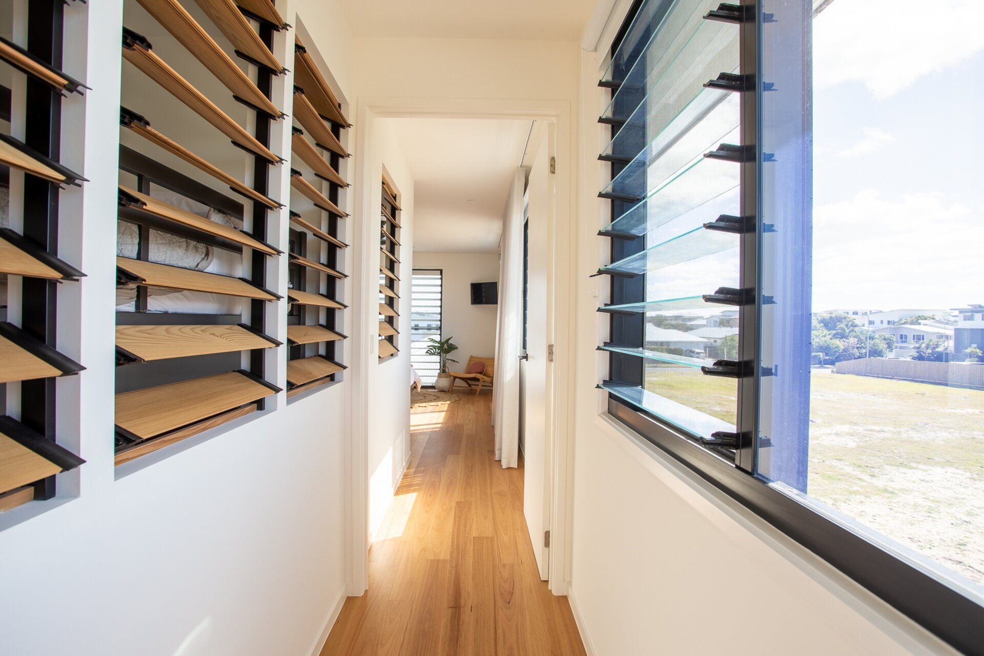 In this solar powered home, efficient ducted air conditioning will keep you cool in summer and warm in winter, however, the home is designed to be eco-friendly and captures the breezes and the warm sun which naturally cool and heat the home.