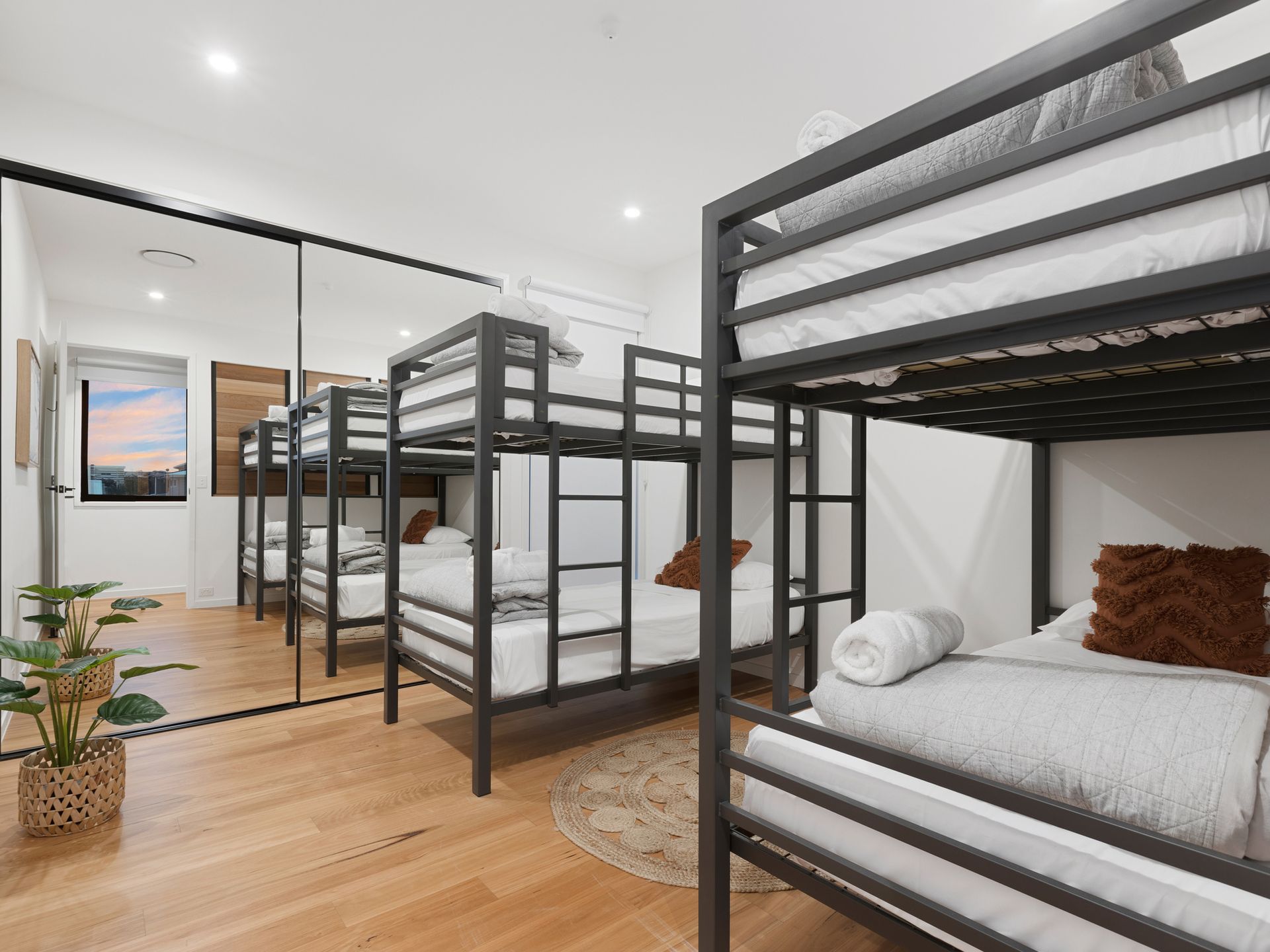 -4 Bedrooms 1 king, 2 queen and 2 sets of single bunk beds