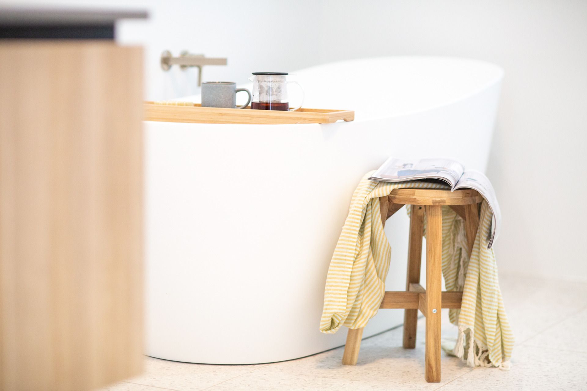 The main bathroom is both functional and beautiful and features a freestanding bath to soak in or enjoy the spacious shower.