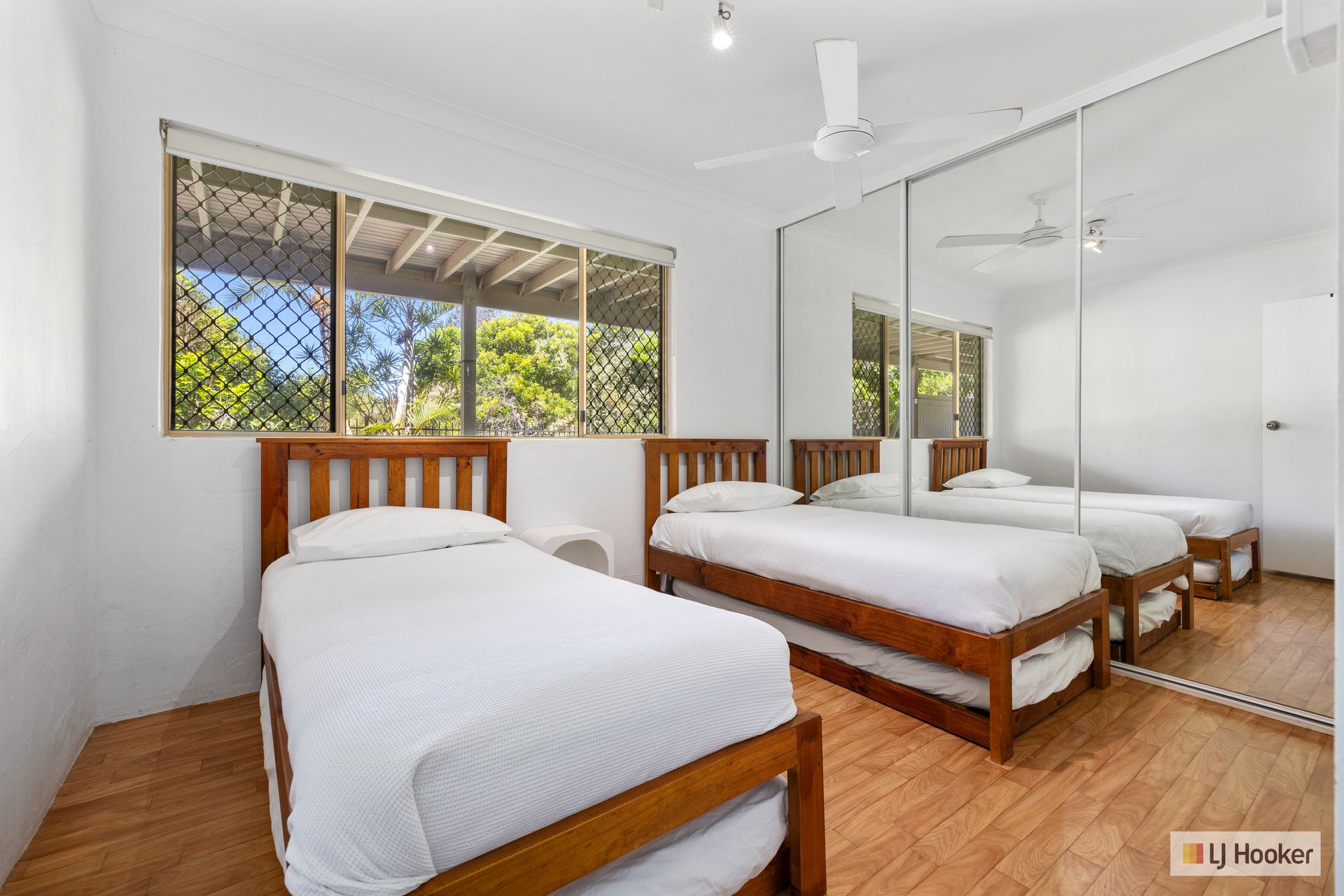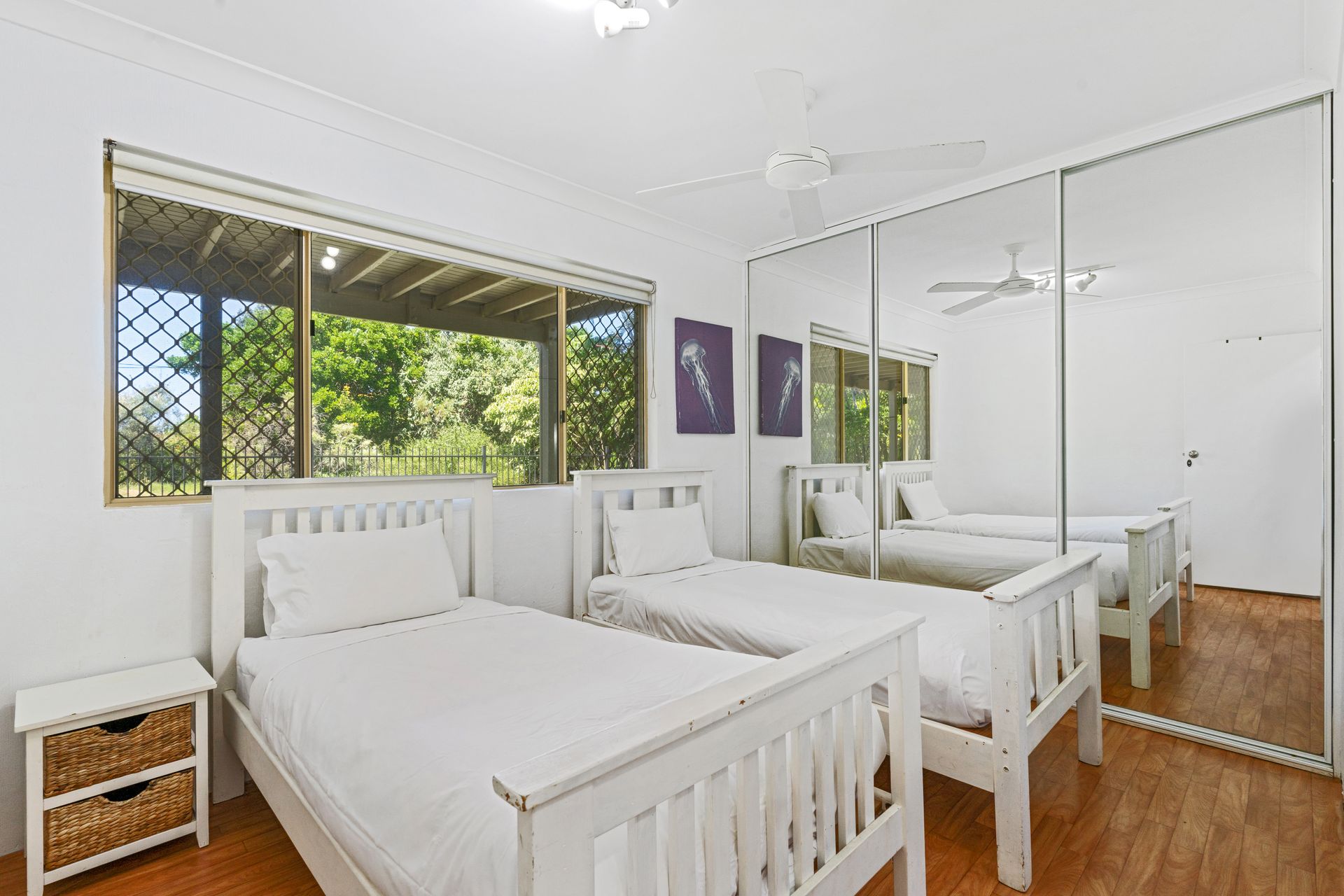 Bedroom 3: Two single beds with 2x trundles and built-in robes (downstairs).