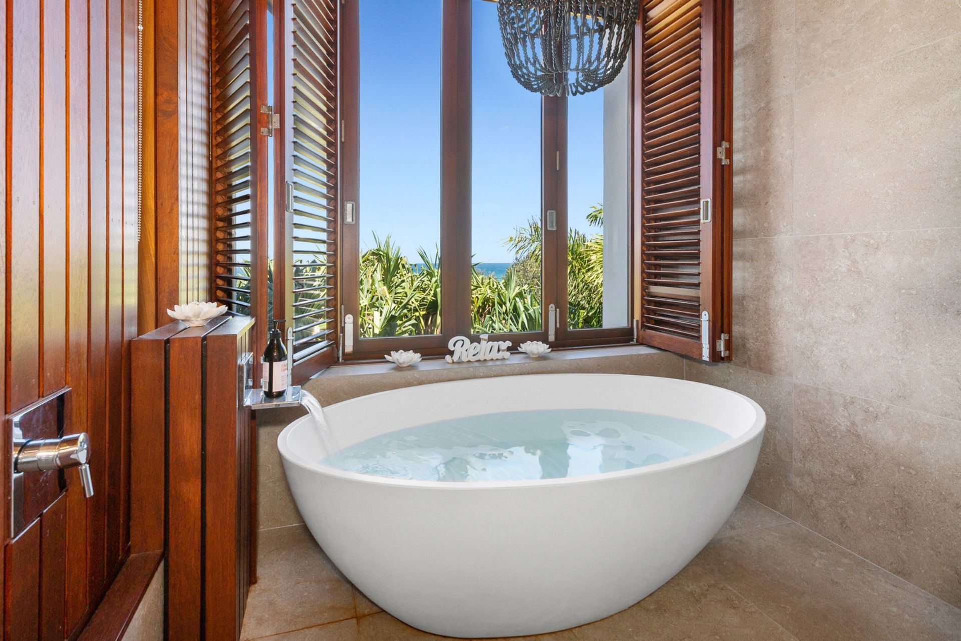 Tranquility at its finest with ocean views, private lush gardens set amongst the Indonesian architecturally designed home