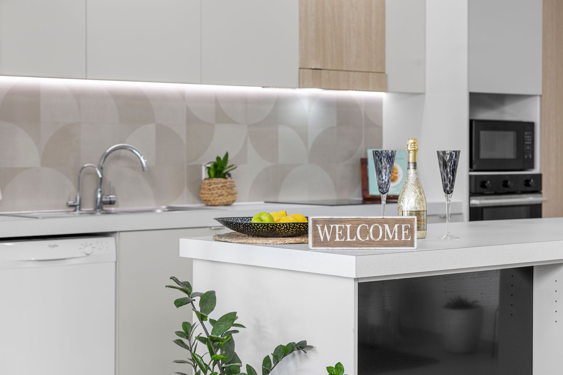 • Fully equipped kitchen with all cookware, crockery, glassware, electric cooktop, dishwasher, oven, microwave, fridge and ample bench space