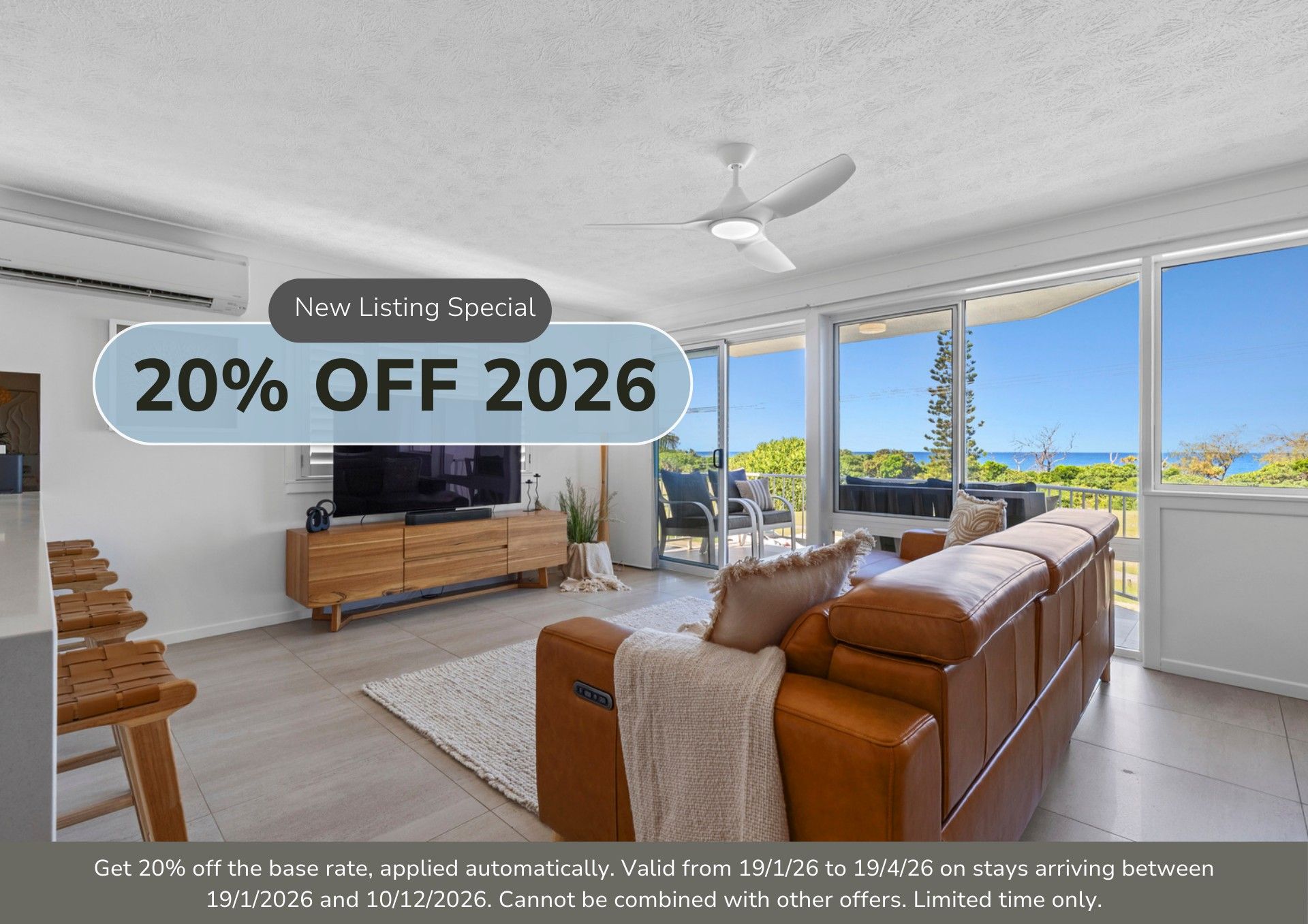 T&Cs Apply. Get 20% off the base rate, applied automatically. Valid from 19/1/26 to 19/4/26 on stays arriving between 19/1/2026 and 10/12/2026. Cannot be combined with other offers. Limited time only.Read More