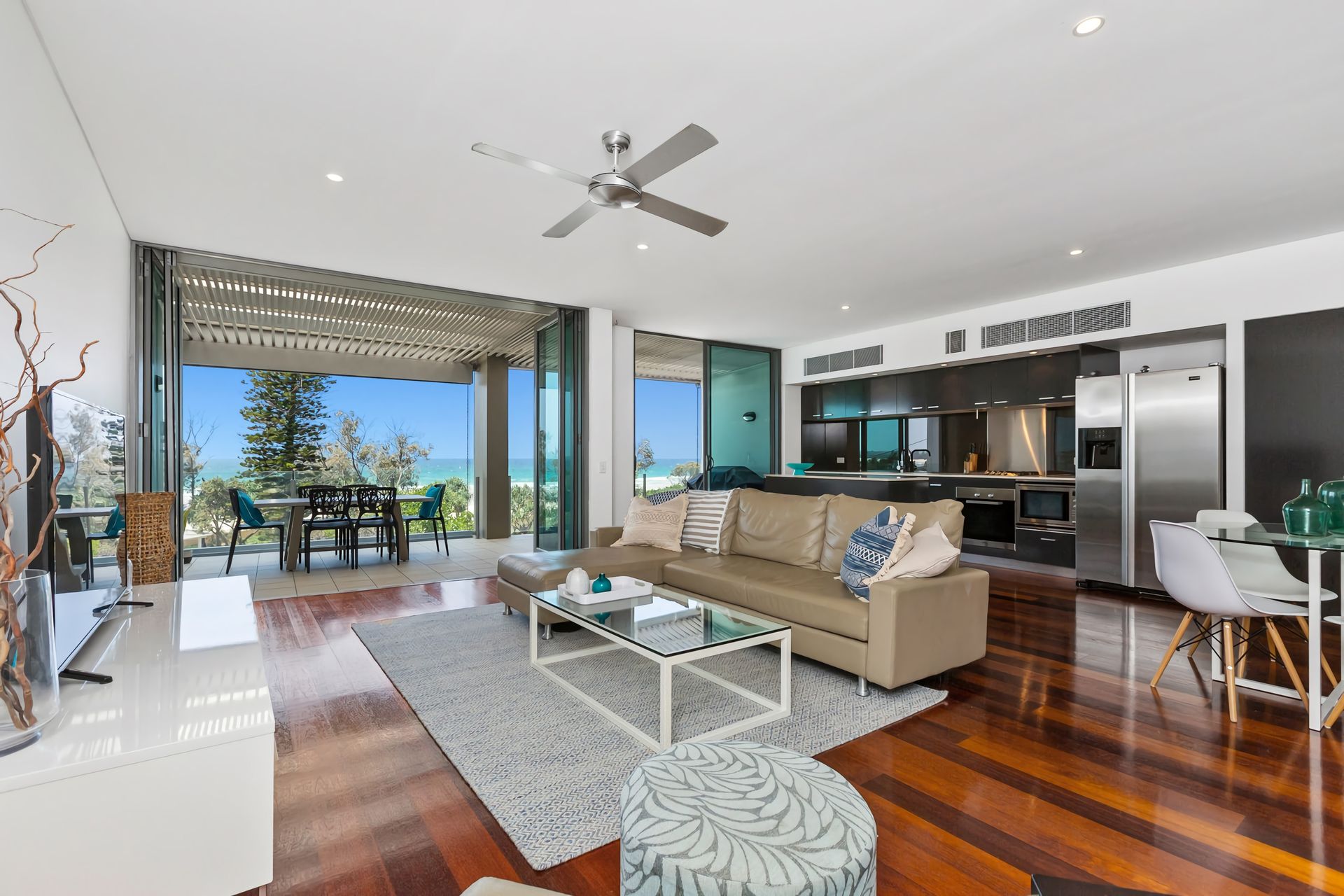 Featuring a spacious open plan living area including a dining table, comfortable lounges, smart TV, ducted air con which opens out to the generous sized balcony.