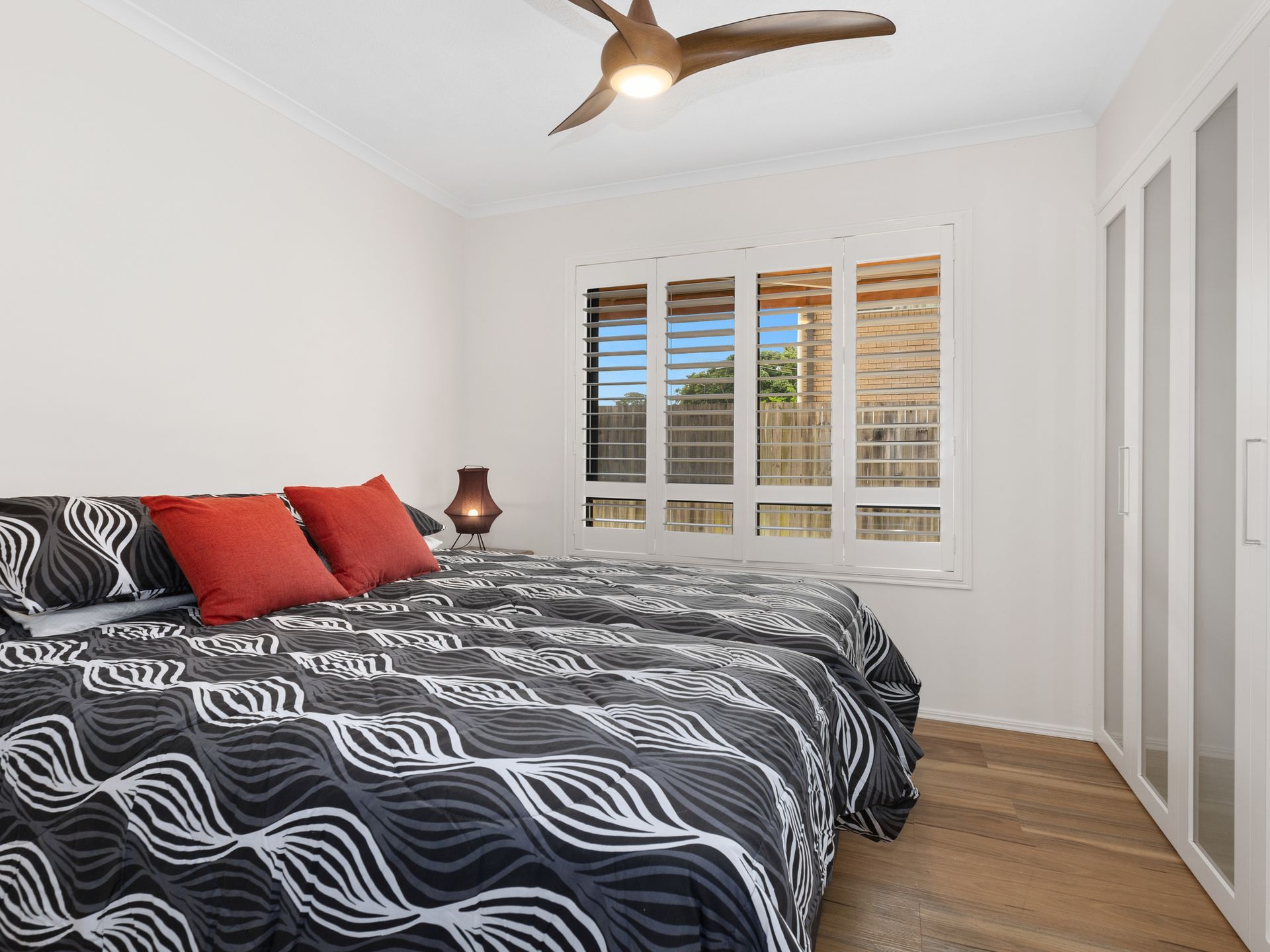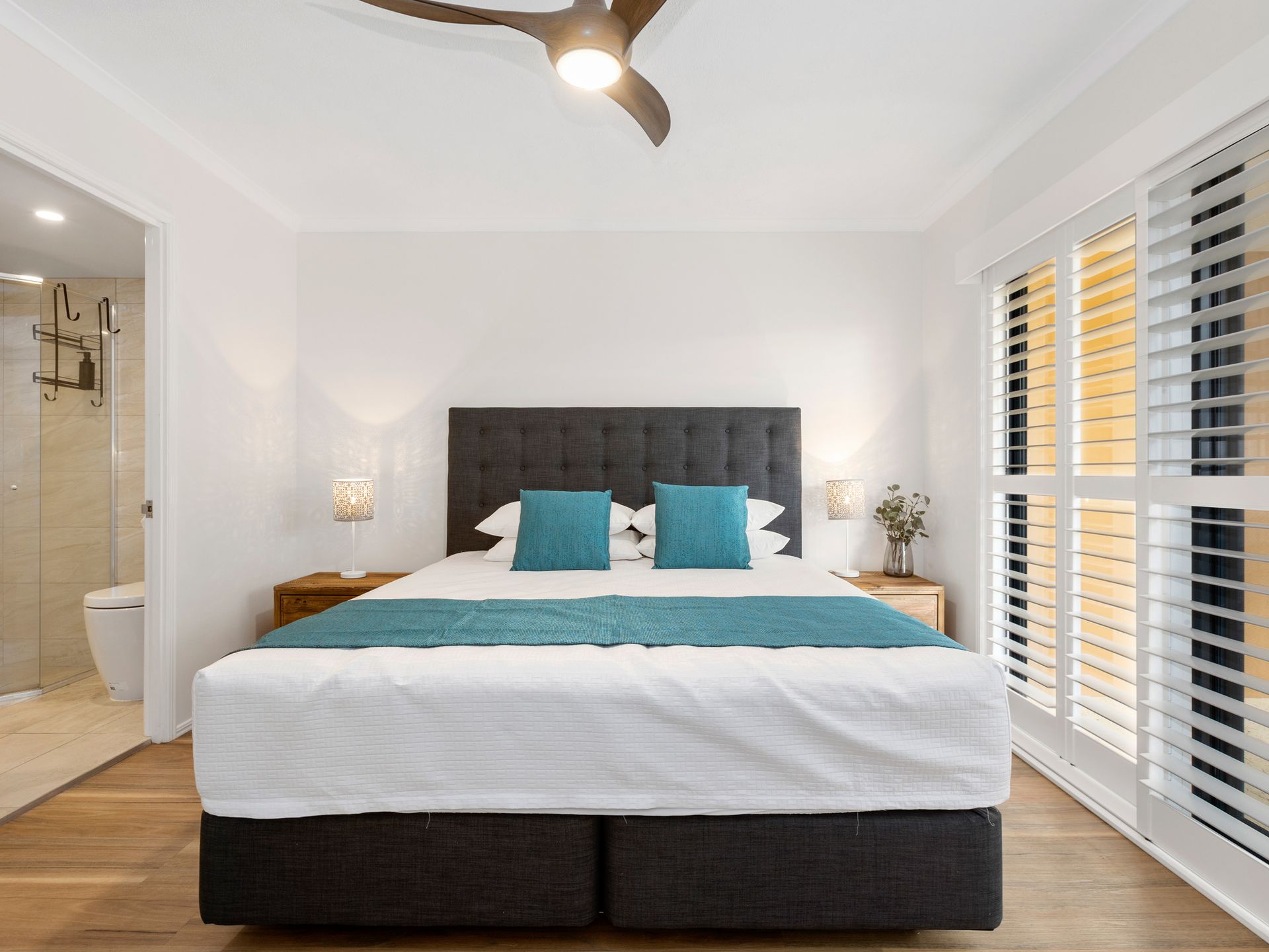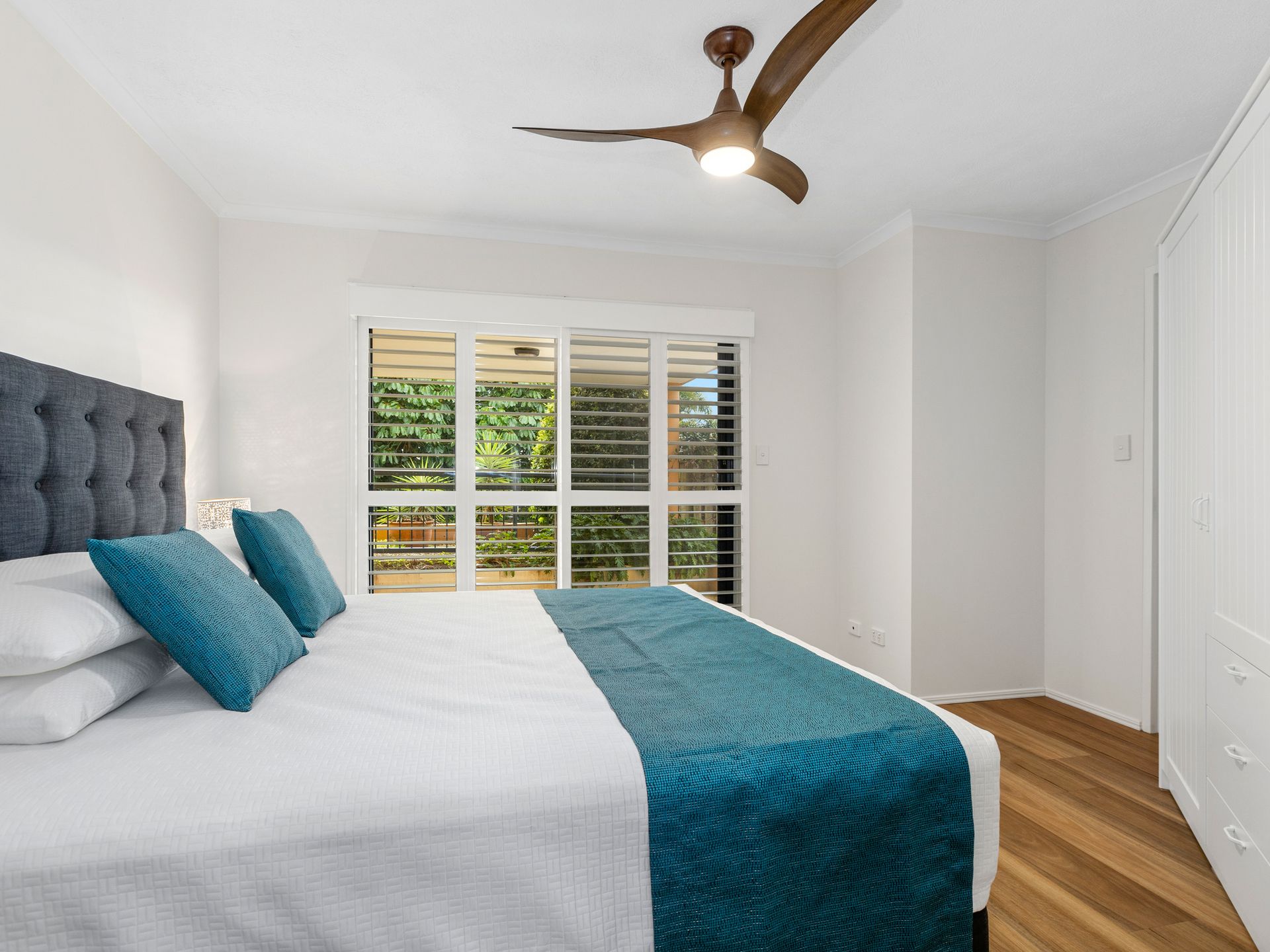 Bedroom 3 consists of a King size bed, ceiling fan- and built-in robe. Please advise our staff if you require the bed to be split into 2 singles.