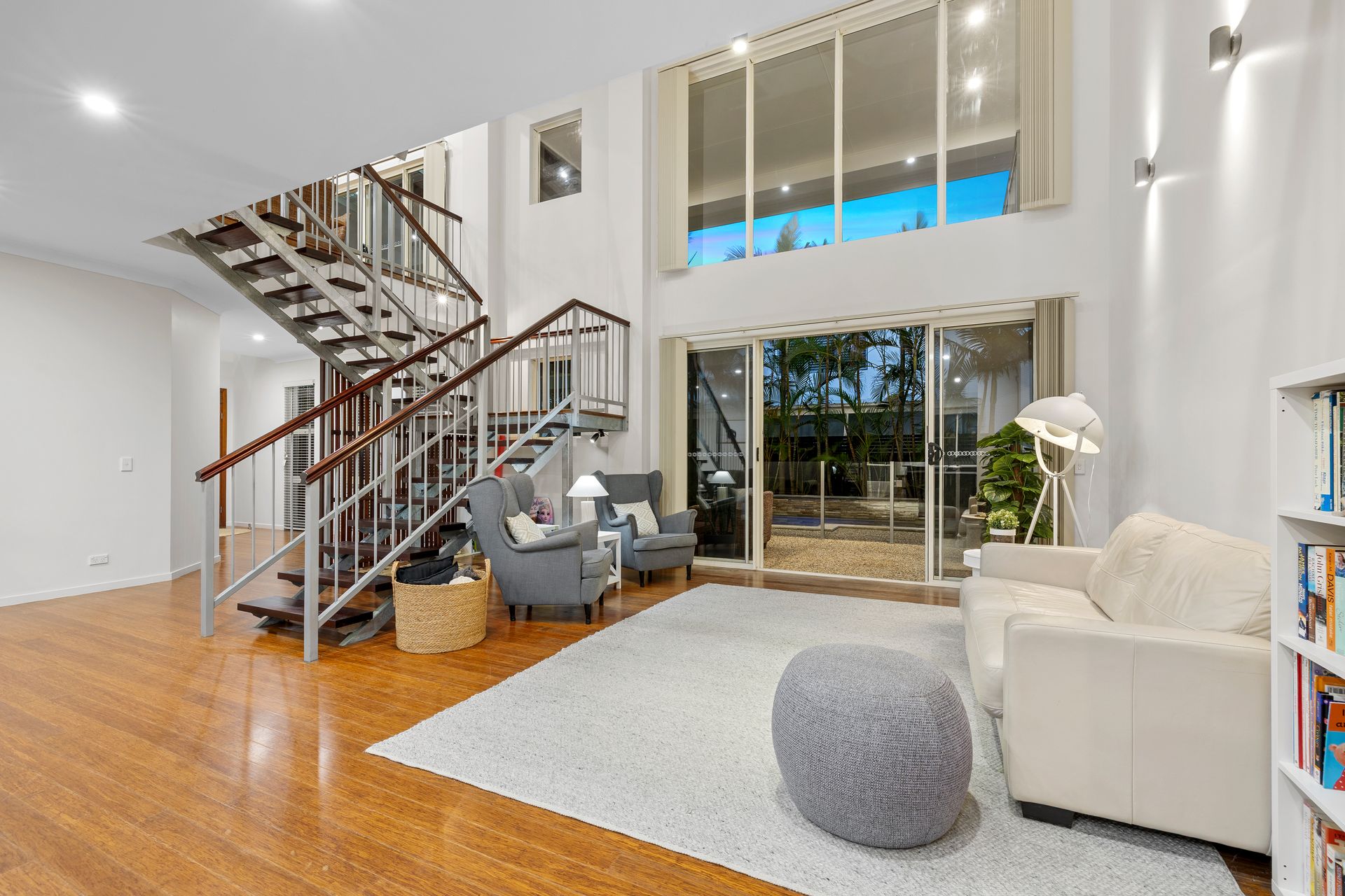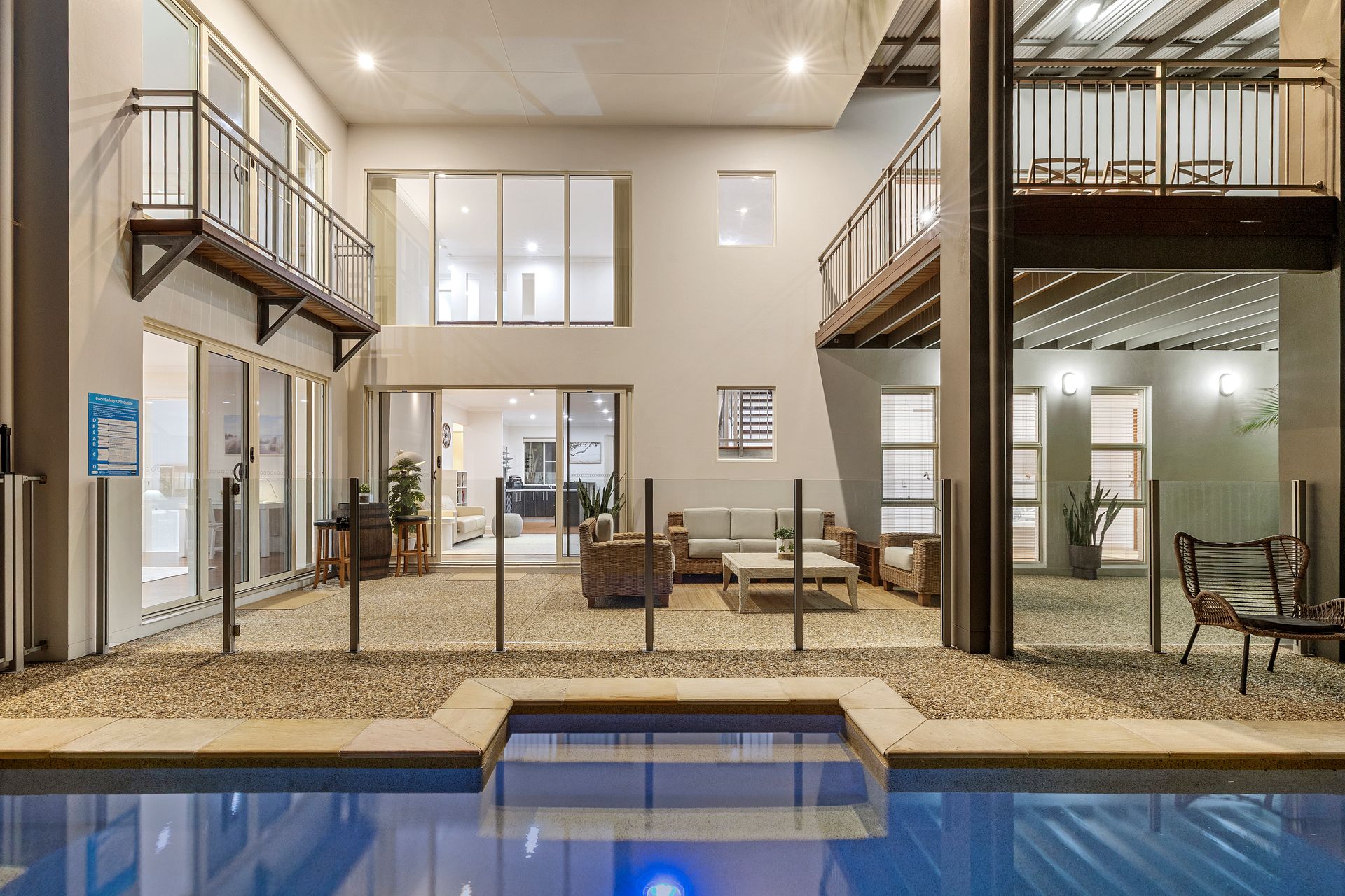 The swimming pool is incased by a beautiful row of palms, providing privacy for your family. Watch the children swim from either the large downstairs patio, complete with bar stools, egg chair and outdoor lounge setting, the downstairs living room, the downstairs Master bedroom or the large BBQ deck upstairs! A beach cart has been provided for your convenience.