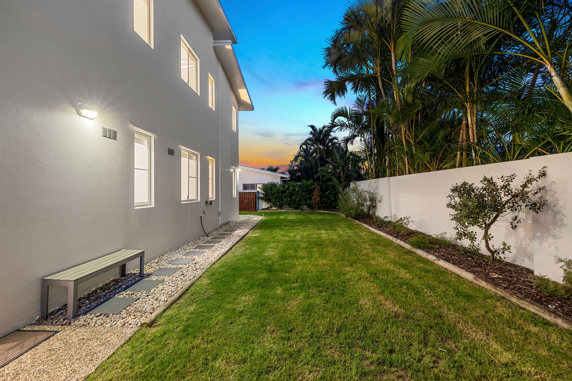 A spacious, grassy backyard offers a safe space for kids and pets to run and play, perfect for backyard cricket, ball games, and outdoor fun.