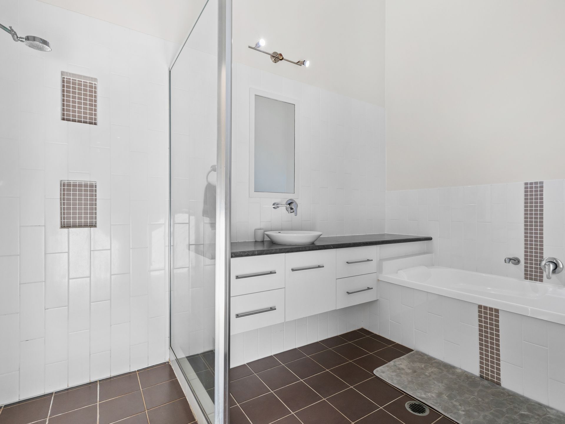 The main bathroom nearby includes a bathtub, shower and separate toilet.