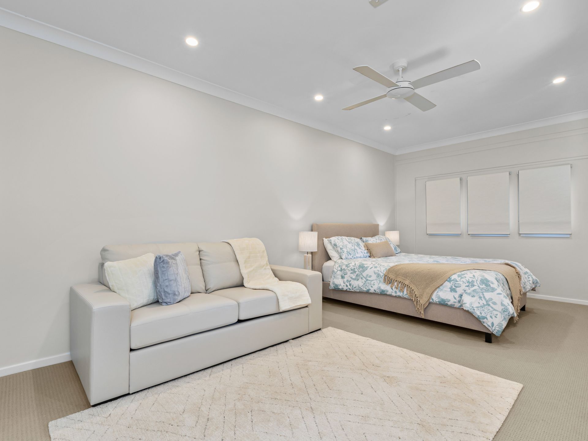 The garage has been converted into a large bedroom with a Queen size bed, built in robe and couch, conveniently located on the ground floor- perfect for extended family, grandparents, or friends.