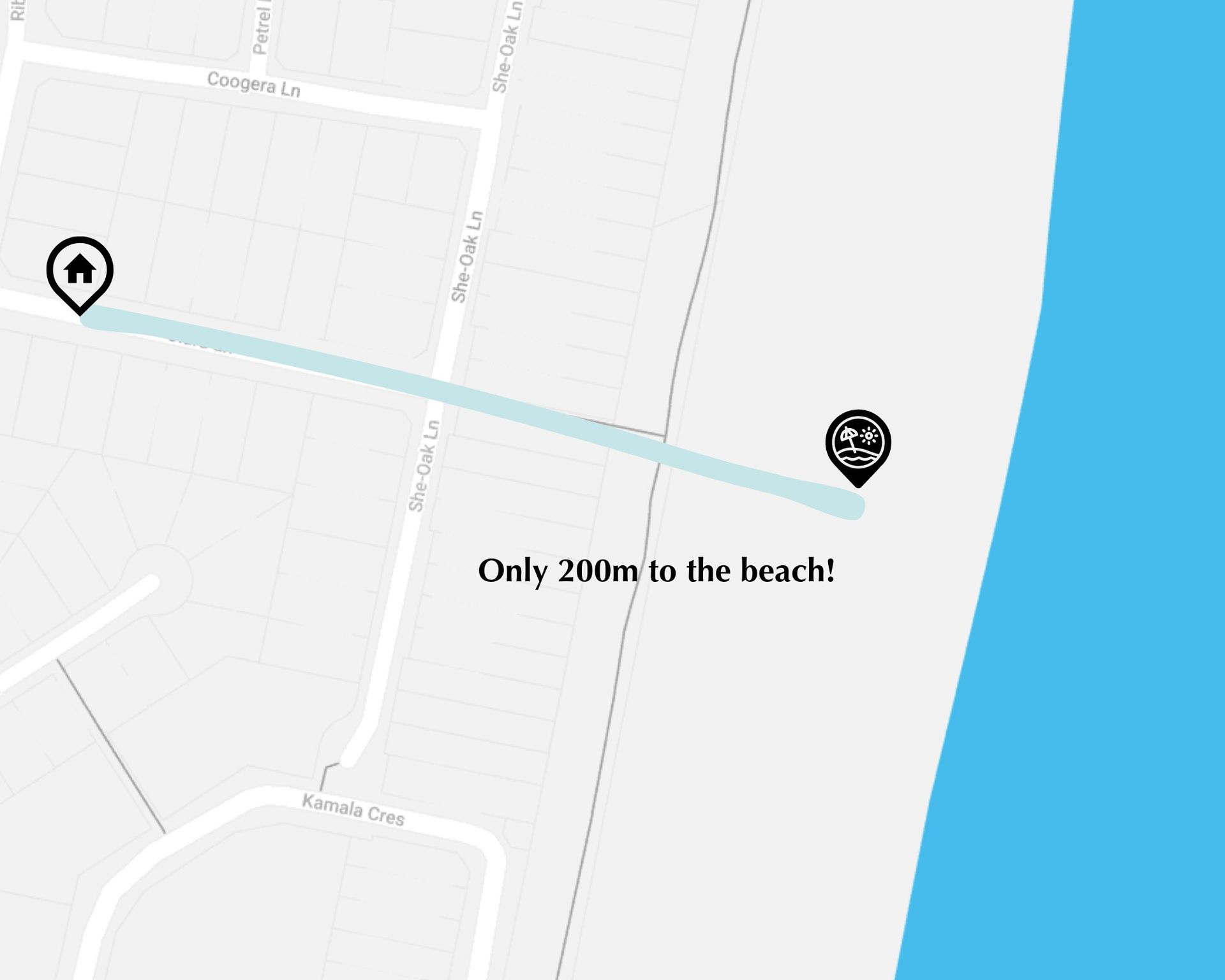 - Less than 150m from the beach.
