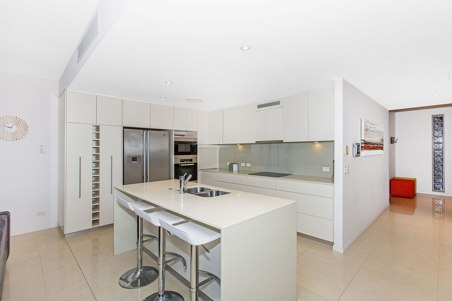 Tailored furnishings and all new decor to ensure your stay is fresh and in-keeping with this executive laid back lifestyle. The kitchen has Meile appliances, a large oven to suit and of course the ice/water double door fridge for especially cool drinks on those summer evenings.