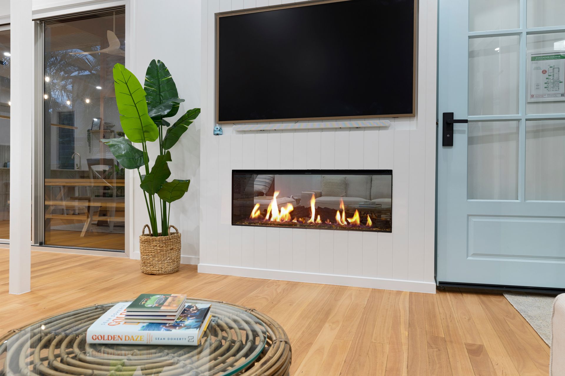 The comfortable 5-seater lounge is perfect for resting after a long day exploring and enjoying the beach. An electric fireplace heater adds a cosy touch, with flickering faux flames that create the ambience of a real fire without the fuss. The Smart TV with soundbar and WiFi ensure you have access to all your streaming accounts and to stay connected in your home away from home. The high ceilings enhance the sense of space, while on warmer days, you can utilise the split-system AC or open the louvres and use the ceiling fan to keep the home cool.