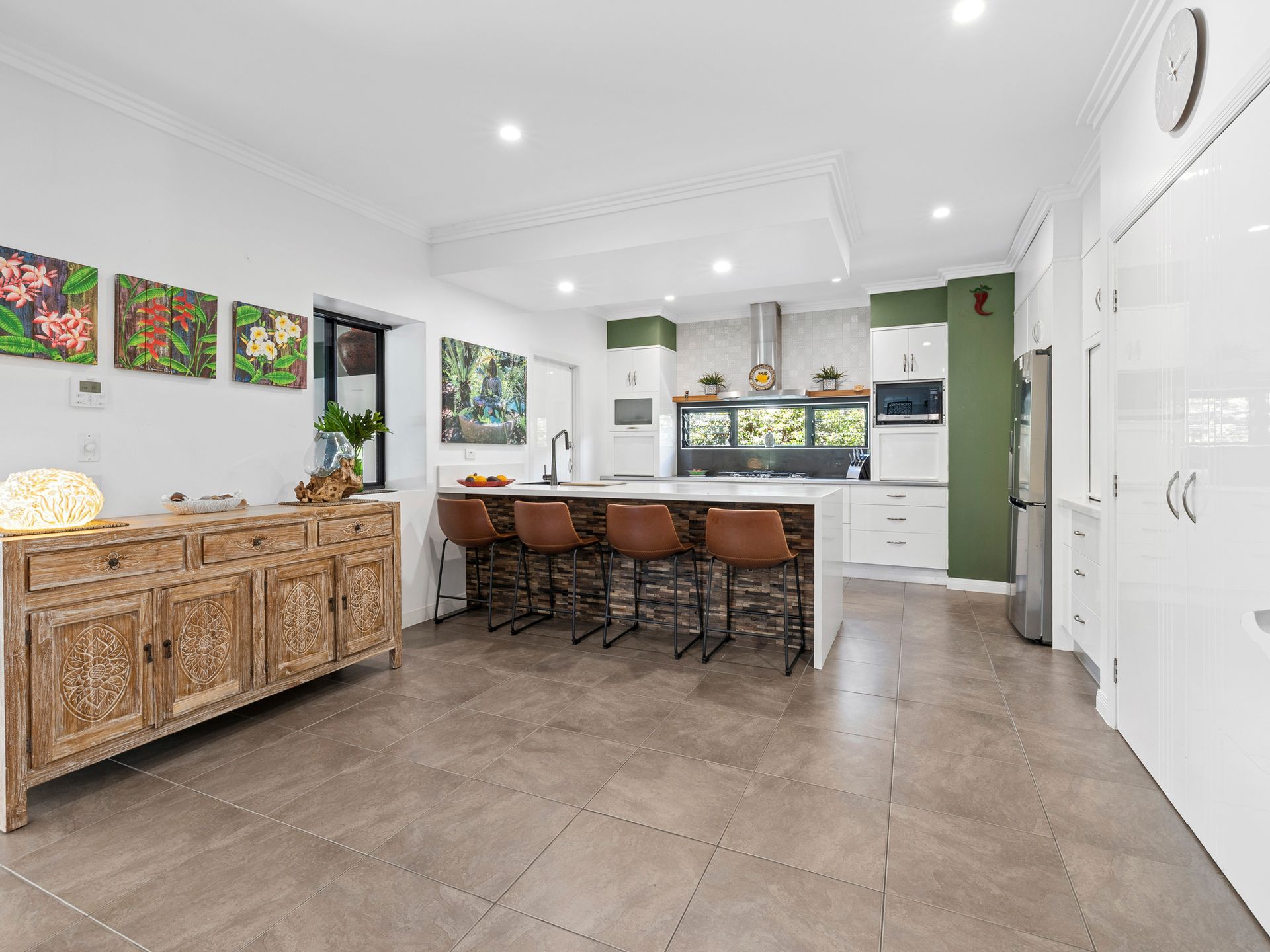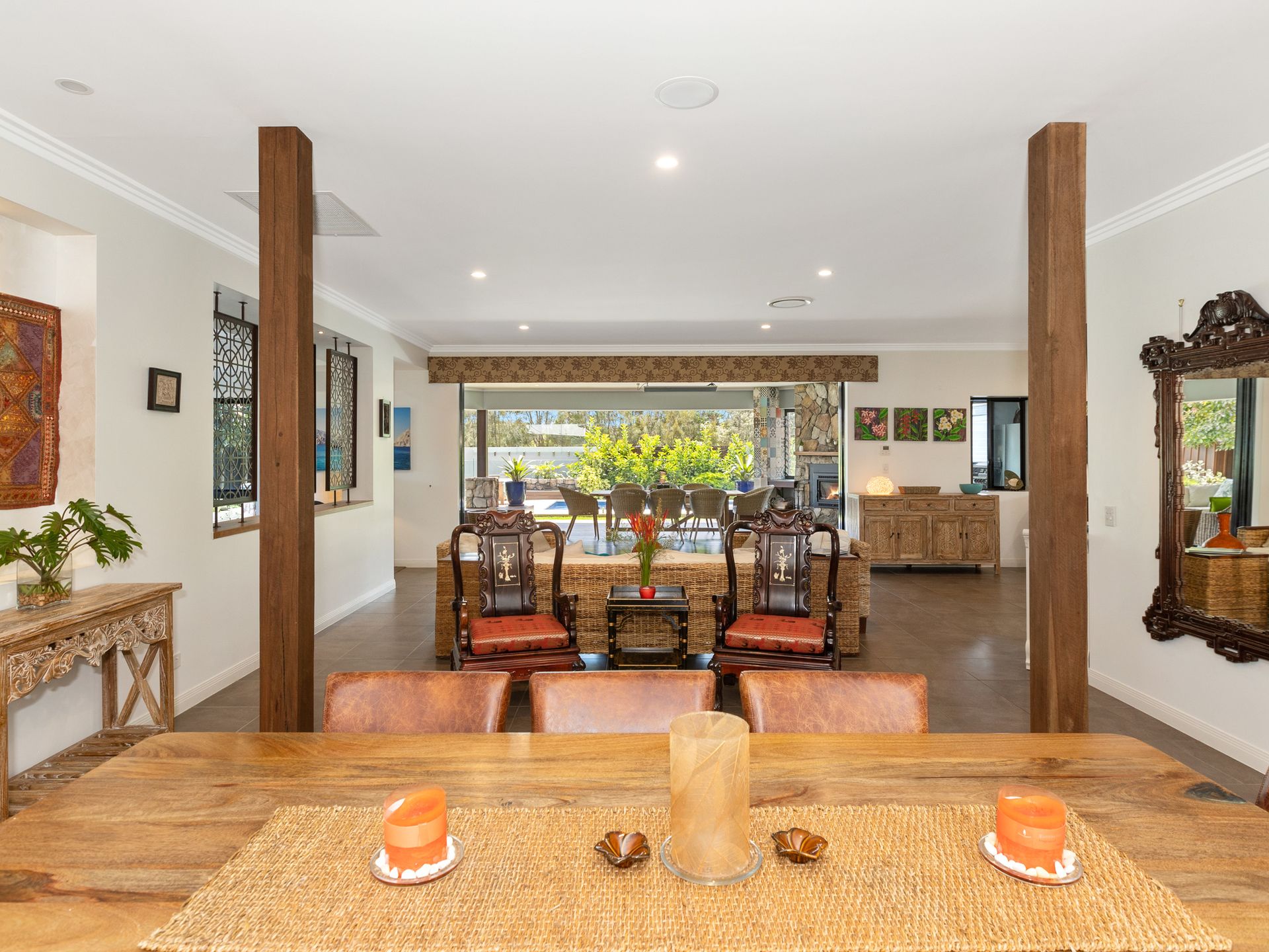 As you enter the property you will be awed as you look through the open plan dining and informal lounge area to the main feature of the house – its enormous back deck overlooking the solar heated swimming pool. The deck features a table for 8, 2 cane lounges, barbeques, a fireplace, overhead heating, and a double door fridge, with water and ice.