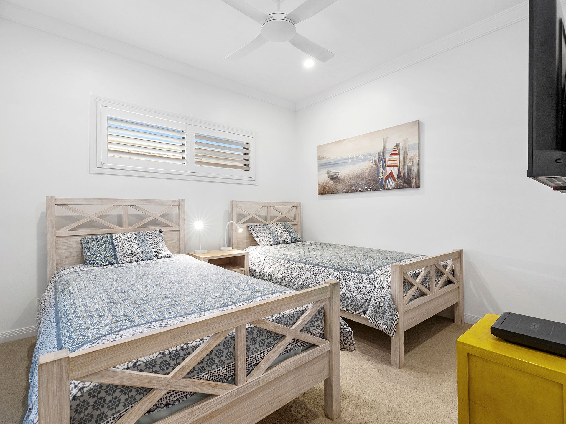 Bedroom 3 has 2 king singles. It also has a wall mounted TV/DVD. (only for DVD or streaming via Telstra TV)