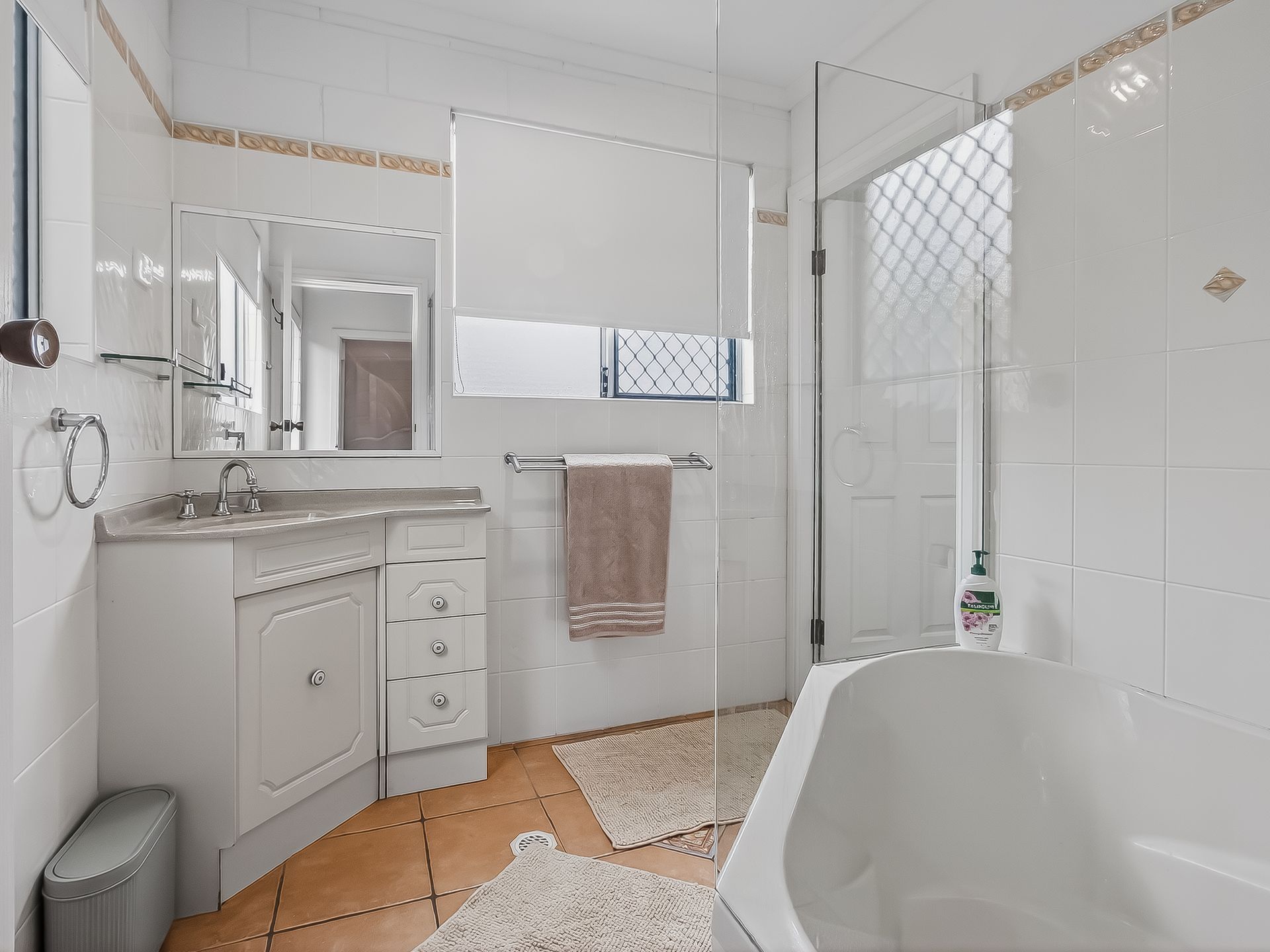 • Upstairs bathroom contains a shower, sink, toilet and bath. Combined bathroom laundry from external access contains shower, toilet and sink.