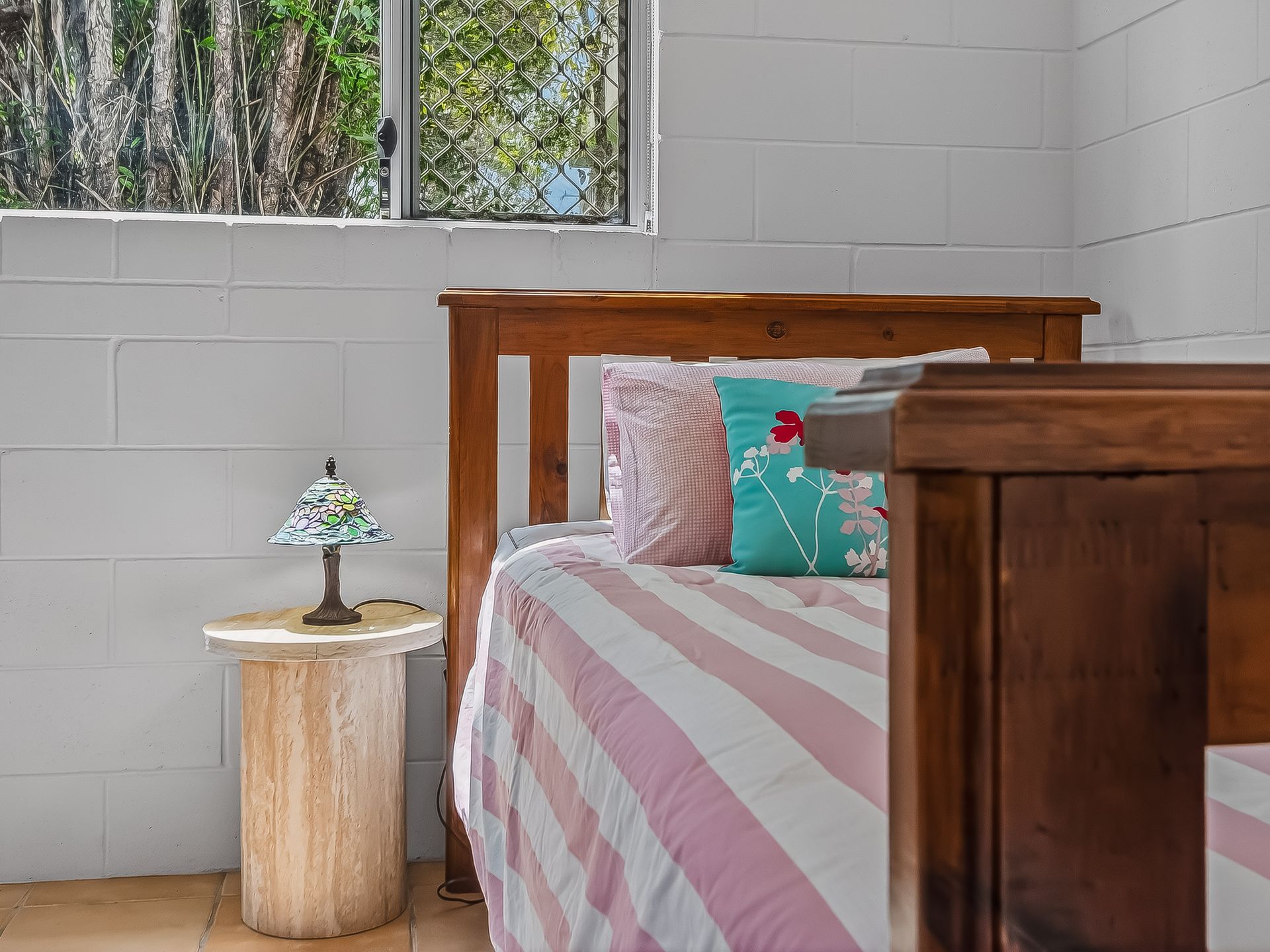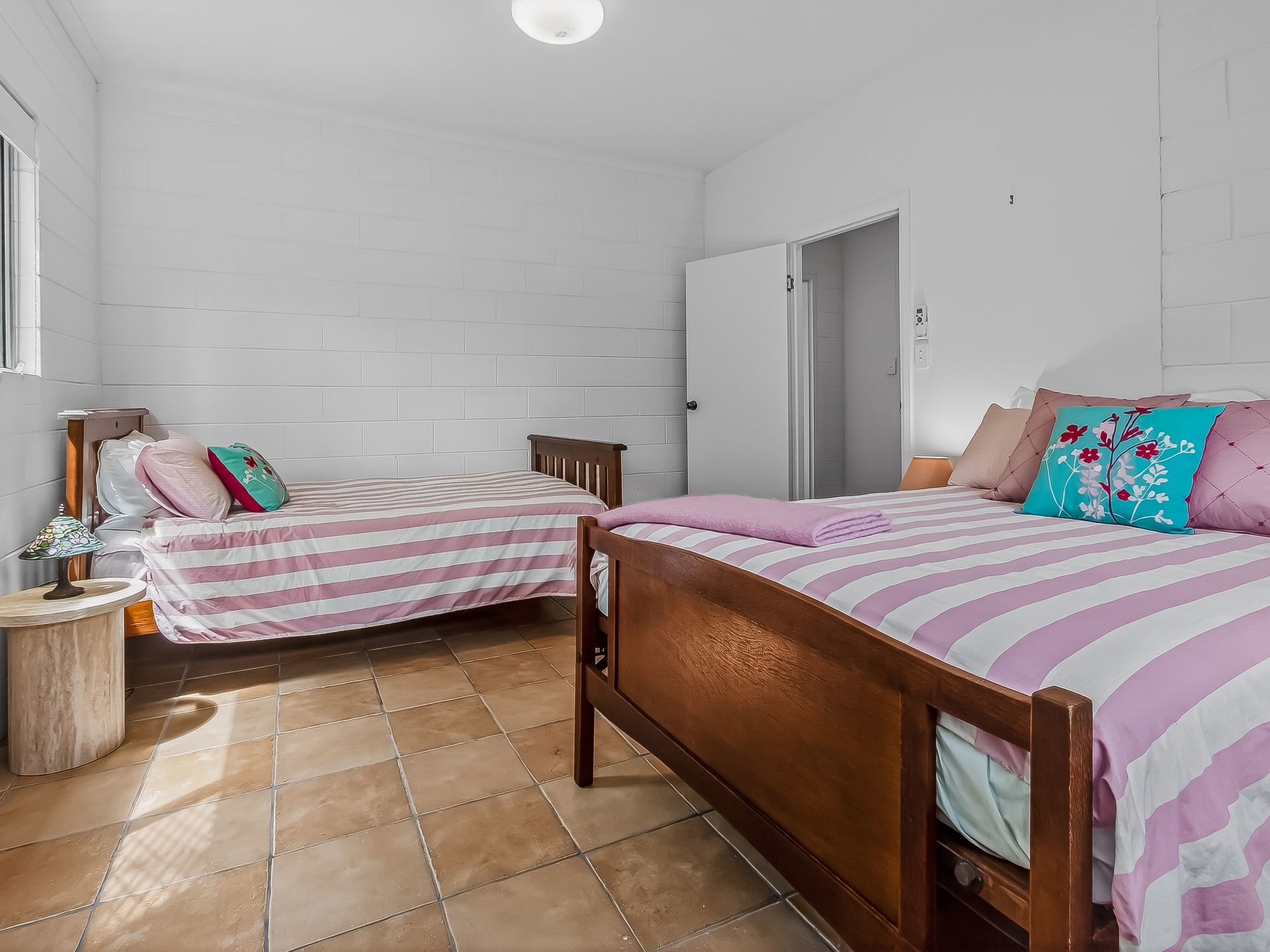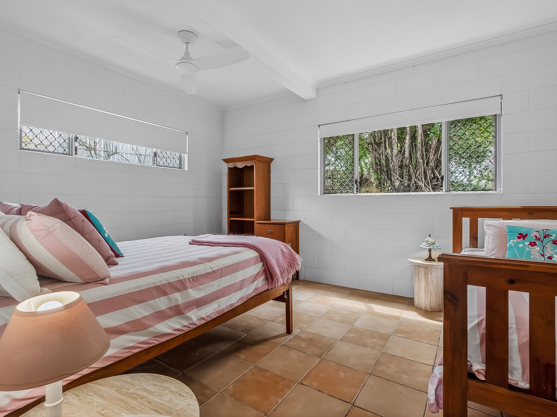 • Bedroom 4 features a Queen bed, ceiling fan and table and chairs.
