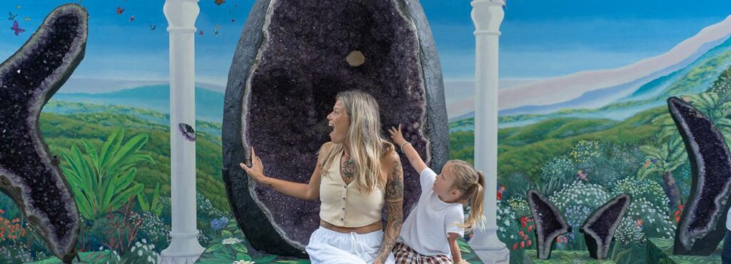Crystal Castle in Montecollum is a peaceful hinterland retreat surrounded by beautifully maintained gardens, rainforest paths and unique crystal installations. Visitors can explore features such as the Shambhala Gardens, the Crystal Labyrinth, the World Peace Stupa and the Enchanted Cave, along with regular guided meditations and sound healing experiences. It is a relaxing place to wander, recharge and enjoy panoramic views over Byron’s hinterland.