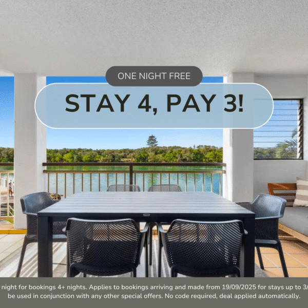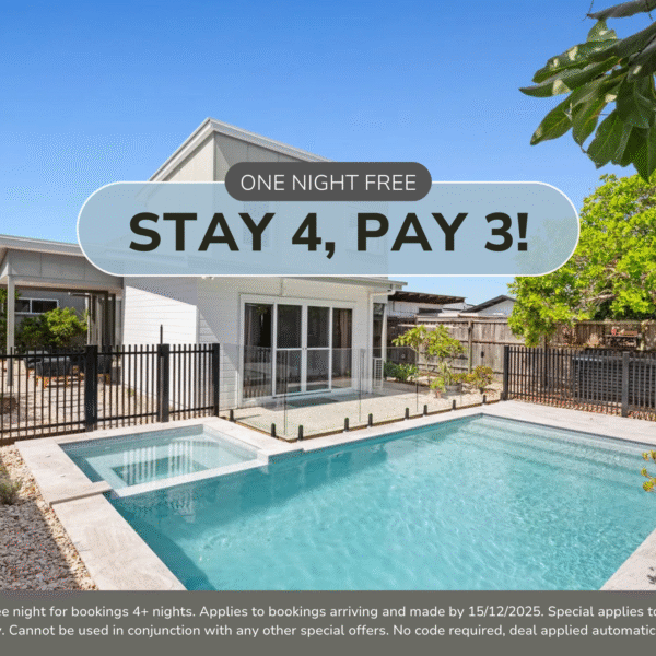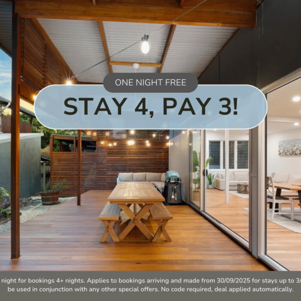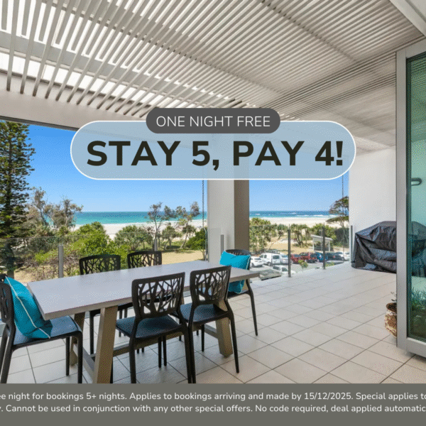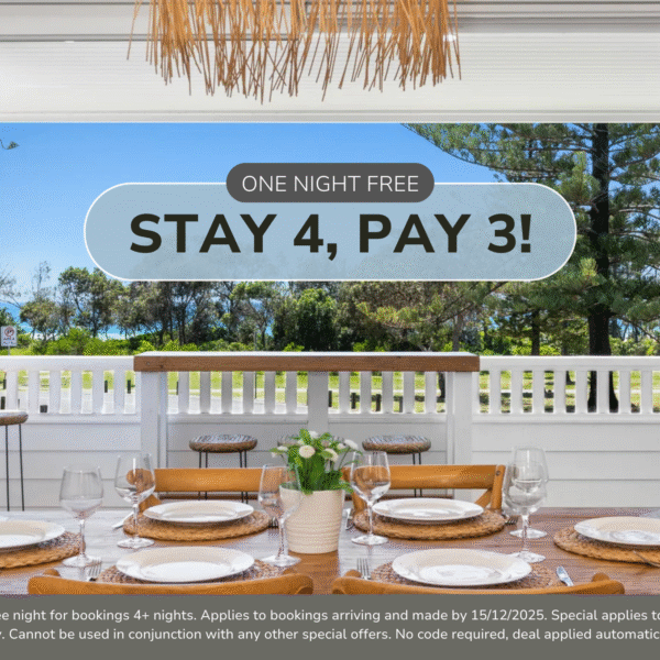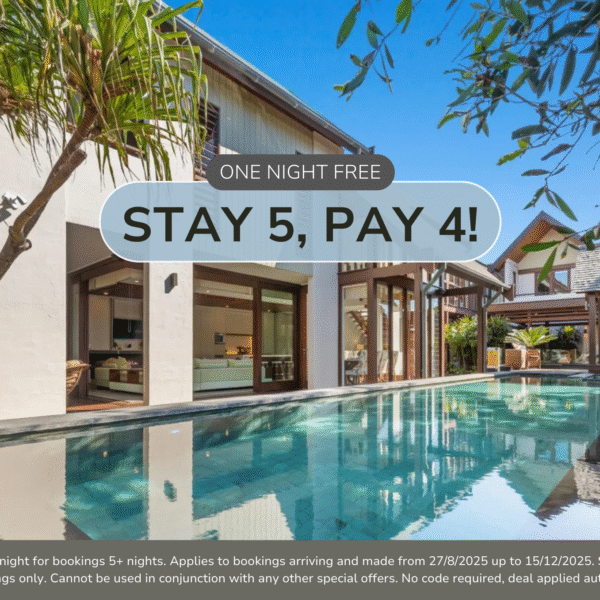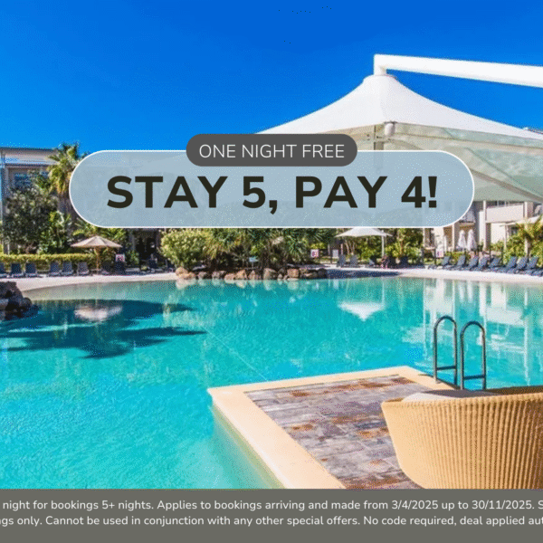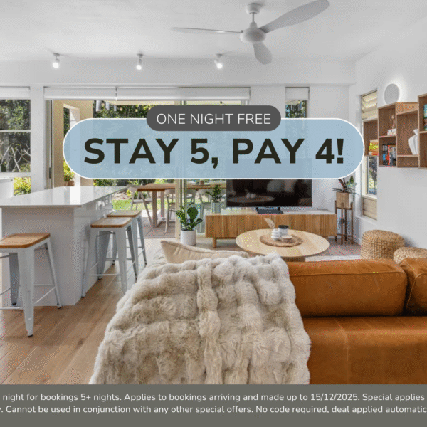 T&C’s Apply. Receive one free night for bookings 5+ nights. Applies to bookings arriving and made from 27/8/2025 up to 15/12/2025. Special applies to new bookings only. Cannot be used in conjunction with any other special offers. No code required, deal applied automatically.